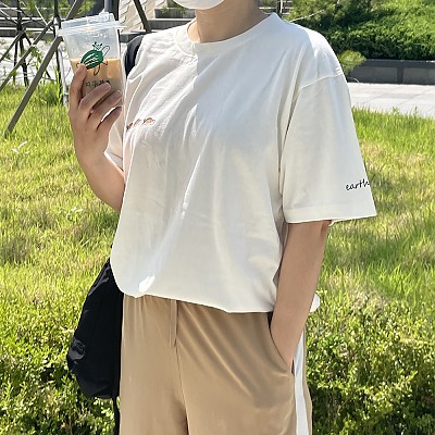 지구본 남녀공용 17수 라운드 티셔츠